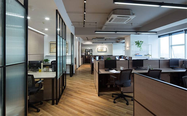 辦公室裝修設計利用可拼裝、可折疊、可移動、可升降的隔斷或家具、屏風、陳設等分隔空間,可以根據使用要求隨即啟閉或移動,空間也就隨之或分或合、或大或下,這種分隔方式成為靈活分隔或彈性分隔。